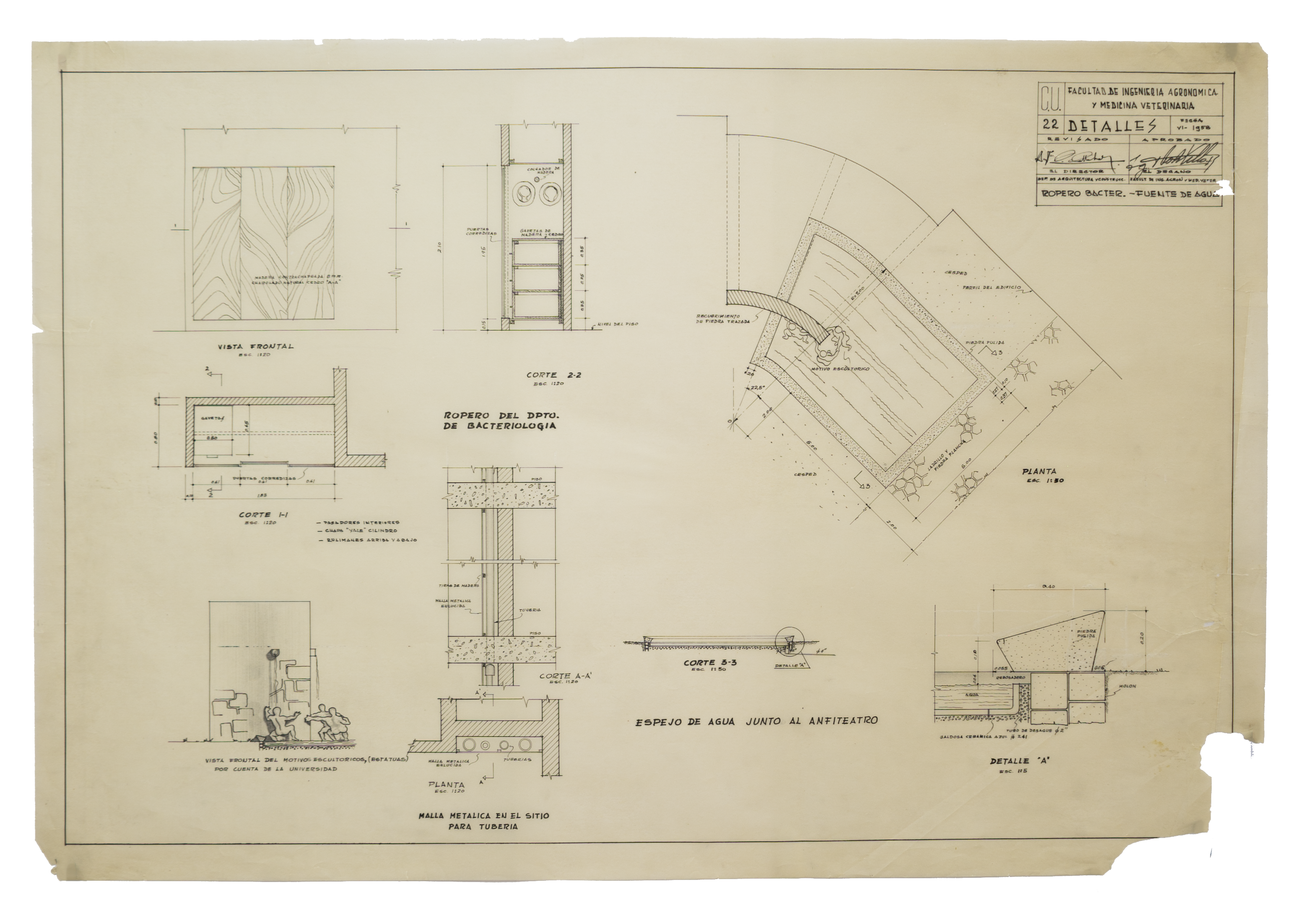 -planos del antiguo departamento de Diseño y Construcción de la Universidad Central fundado por Gilberto Gatto Sobral en 1951